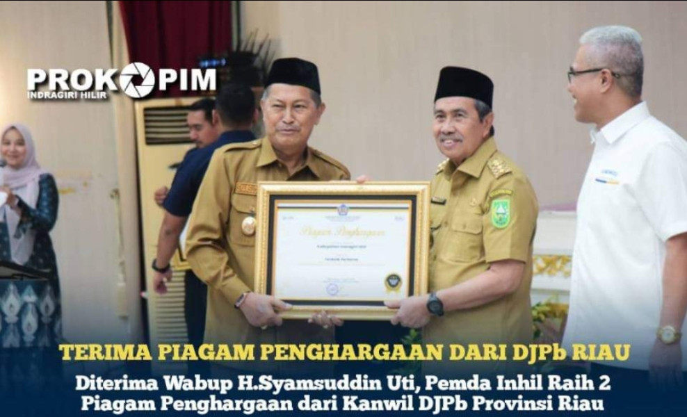 Kilasriau.com - Pemerintah Kabupaten Indragiri Hilir menerima 2 Piagam Penghargaan dari DJPb Provinsi Riau dengan kategori Terbaik Pertama atas Kinerja Pengelolaan Dana Desa Terbaik 2022 dan Terbaik Pertama atas Kualitas Penyampaian LKPD dan Penyelesaian Tindak Lanjut Rekomendasi BPK terbaik 2022 yang diserahkan Gubernur Riau.