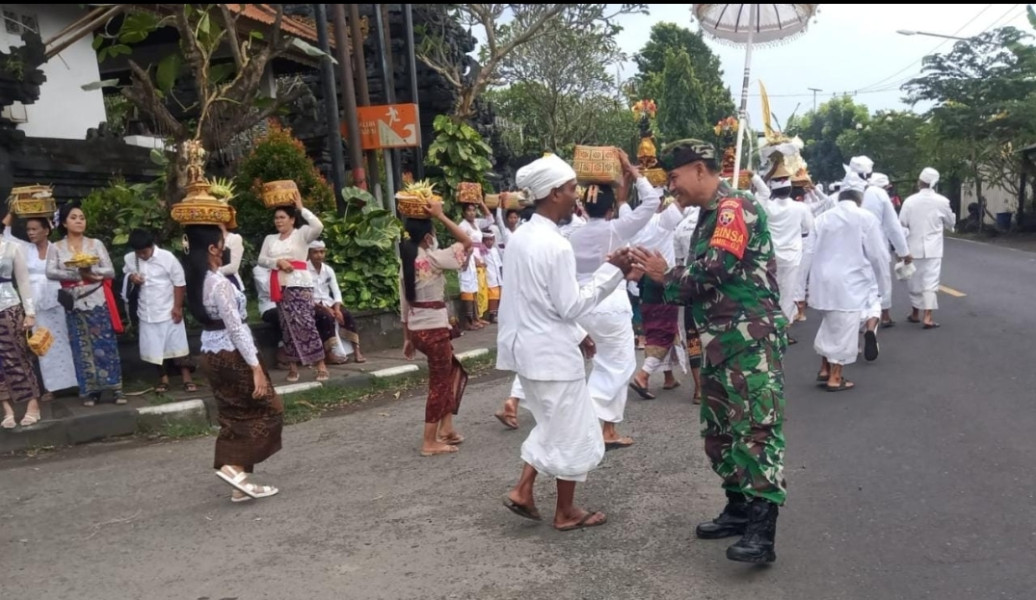 Seperti yang dilakukan oleh Pelda Wayan Mariana, Babinsa Pesinggahan di sela dirinya mengawal adanya acara melasti di Pantai Segara Goa Lawah. Selasa (05/04/2023).