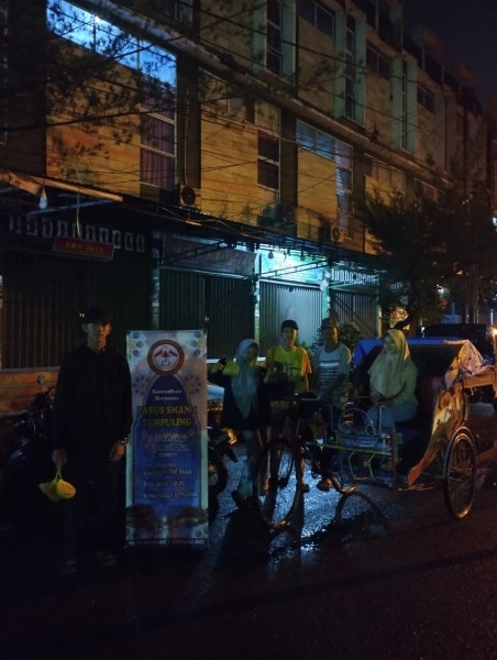 Dimana pelaksanaan tersebut di ikuti lebih kurang 20 orang siswa dan alumni ini, kemudian terdapat 100 ratusan nasi santap sahur siap dibagi kan langsung kepada para pedagang kaki lima, tukang becak serta masyarakat yang membutuhkan.