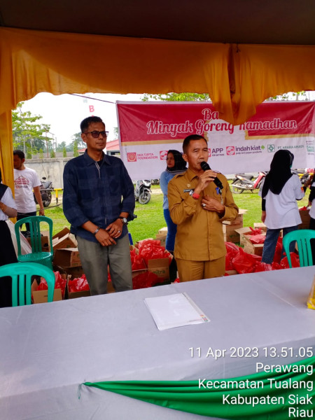 Kegiatan Bazar Minyak Goreng Ramadhan tersebut di sponsori oleh Ela Tjipta Fondation, Sinarmas, APP Sinarmas, IKPP, PT Acara Abadi, Yayasan Muslim Sinarmas, dan terlihat hadir Asisten 1 Setda Kab Siak Dr H Fauzi Azmi, Camat Tualang, Humas IKPP, Seluruh warga Kecamatan Tualang.
