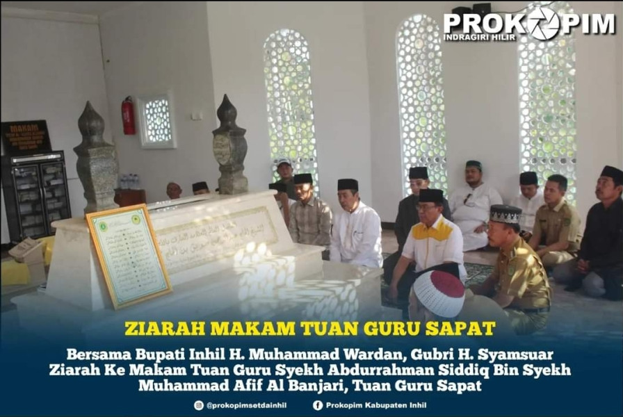 Dalam kesempatan ini, Gubri H. Syamsuar didampingi Bupati Inhil H. Muhammad Wardan berkesempatan berziarah ke Makam Tuan Guru Syekh Abdurrahman Siddiq Bin Syekh Muhammad Afif Al Banjari atau yang lebih dikenal dengan nama Tuan Guru Sapat di Kampung Hidayat, Desa Teluk Dalam, Kecamatan Kuala Indragiri (Kuindra).