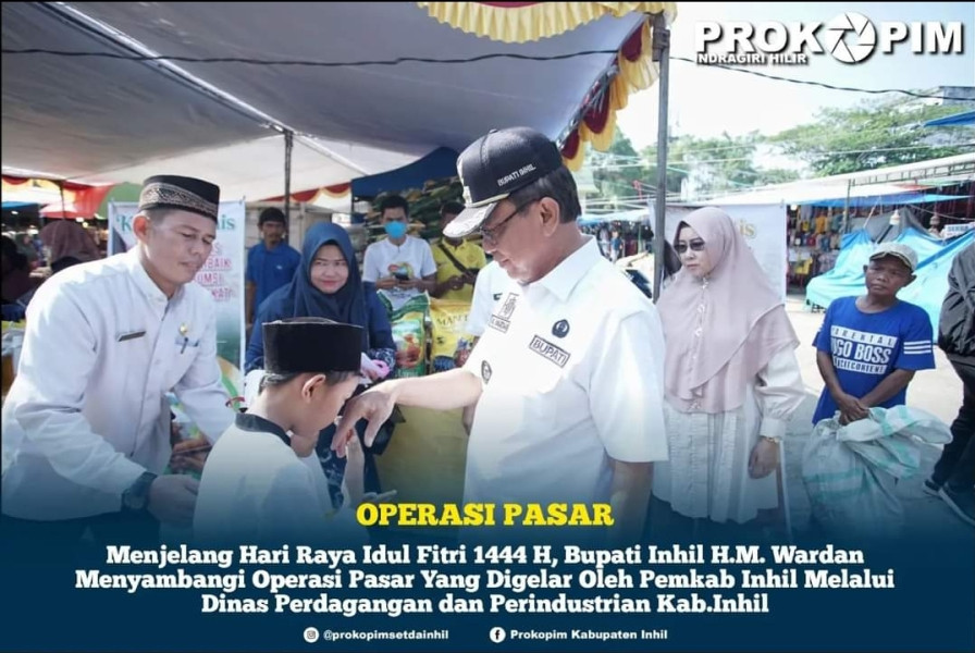 Kilasriau.com - Jelang Hari Raya Idul Fitri 1444 H Bupati Inhil H.M.Wardan Sambangi Operasi Pasar yang dilaksanakan di Lapangan Gajah Mada Tembilahan, Rabu (12/04/2023).