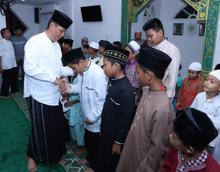 Polres Inhil Sholat Tarawih Sekaligus Santuni Yatim