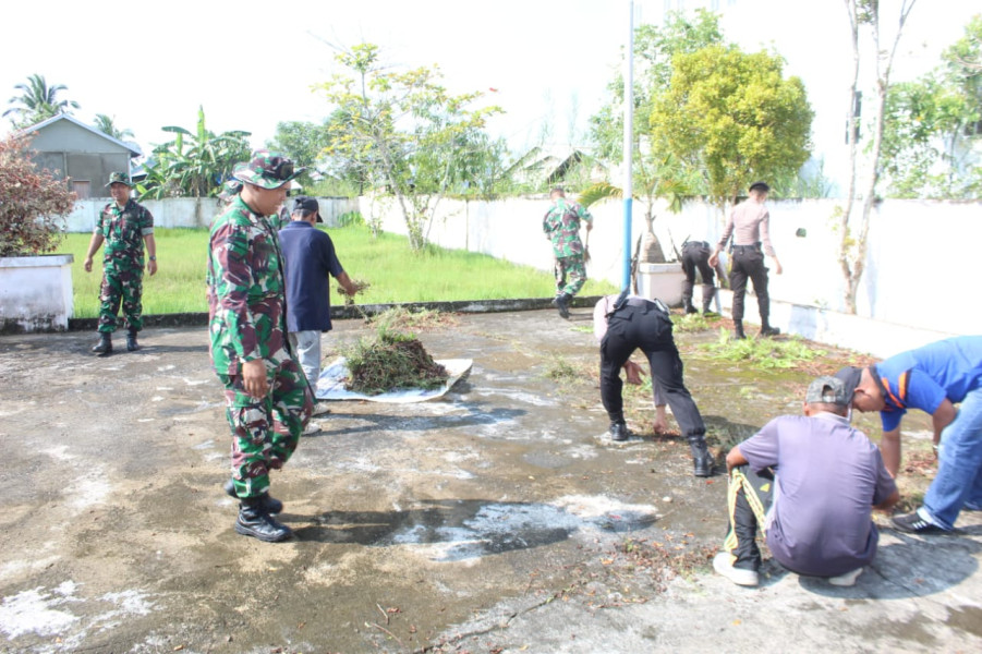 Sambut HUT Ke-64 Korem 031/Wira Bima Kodim 0314/Inhil Gelar Karya Bhakti Pembersihan Taman Makam Pahlawan