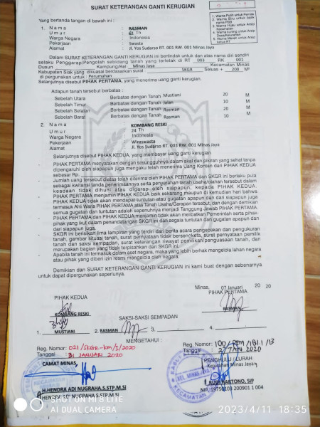 Diberitakan sebelumnya, masyarakat di RT 03 RK 01 Dusun Meranti, Kelurahan Minas Jaya, Minas, Siak mengeluhkan terkait status kepemilikan tanahnya diragukan menjadi milik sendiri. Ironisnya, Pemerintah setempat melalui mantan Camat Minas H. Hendra Adi Nugraha dan Lurah Minas Jaya Rudi Hartono, mengeluarkan surat keterangan ganti kerugian dengan jumlah luas tanah seluas 200 meter persegi.
