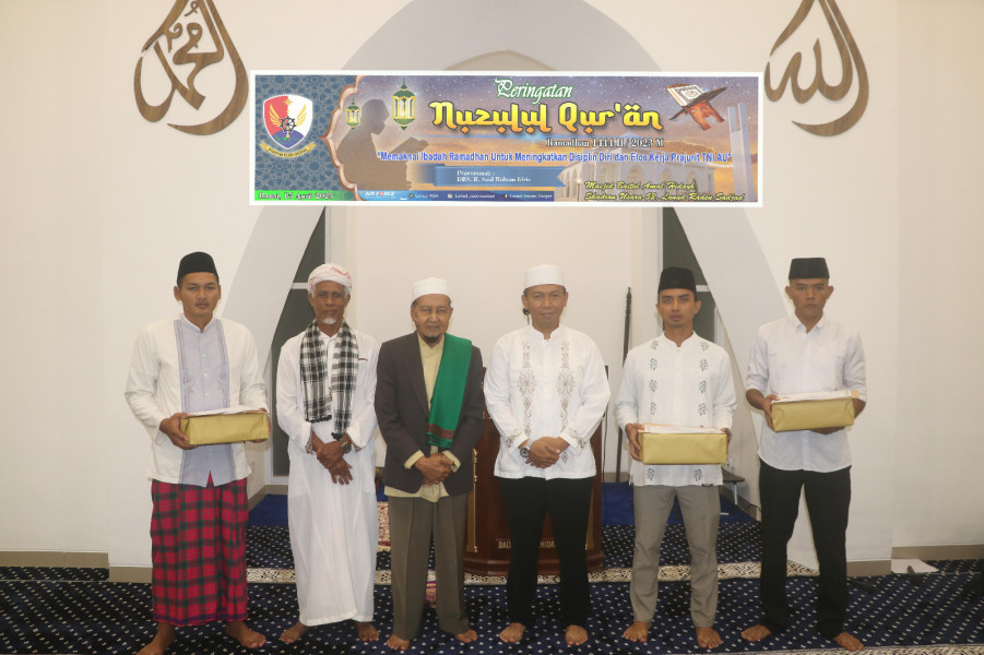 Kilasriau.com - Seluruh personel Lanud Raden Sadjad (Lanud RSA) yang beragama Islam memperingati Nuzulul Qur’an dan sekaligus Khataman Al-Qur’an bertempat di Masjid Baitul Amal Hidayah Lanud RSA, Ranai Natuna, Sabtu (15/4/2023).