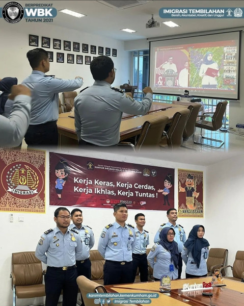 Kilasriau.com - Kantor Imigrasi Kelas II TPI Tembilahan (Imigrasi Tembilahan) berkumpul di Ruang Rapat Binsar untuk melaksanakan kegiatan Apel kesiapan pengamanan hari raya idul fitri 1444 H dan pelepasan mudik bareng kemenkumham tahun 2023 secara virtual.