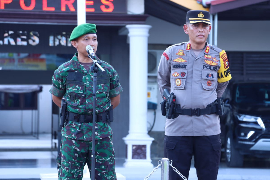 Kilasriau.com - Polres Inhil jajaran Polda Riau bersama Kodim 0314/Inhil, Dishub, Satpol PP, BPBD dan Damkar melaksanakan Apel Persiapan Pengamanan Pengaturan Lalu Lintas Dalam Rangka Pawai Malam Takbiran Idul Fitri 1444 H tahun 2023, Jumat (21/4).