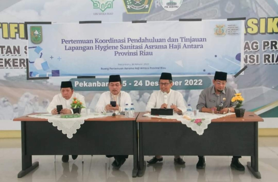 Rapat awal yang dilaksanakan di aula Emberkasi Haji Antara (EHA) Provinsi Riau Jl. Mekar Sari Tangkerang Selatan Kecamatan Bukit Raya Kota Pekanbaru dipimpin Asisten 1 Setda Provinsi Riau Masrul Kasmy turut juga dihadiri Kepala Kantor Wilayah Kementrian Agama Provinsi Riau.