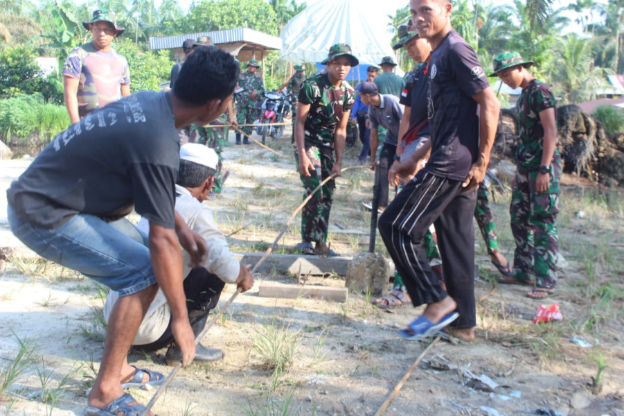 Kilasriau.com - Personel Satgas TNI Manunggal Membangun Desa (TMMD) ke-116 untuk wilayah Kodim 0314 Inhil gotong royong bersama Warga melakukan pekerjaan pemasangan mal dan plaster jembatan di Dusun Rasau Kuning, Desa Pengalihan Keritang, Kecamatan Keritang, Kabupaten Indragiri Hilir, Kamis (11/05/2023).