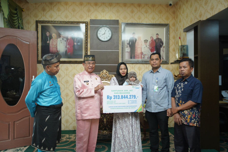 Bupati Inhil HM WARDAN Salurkan Santunan Kematian 313 Juta Dari BP Jamsostek Kepada Ahli Waris Penumpang SB Evelyn Calisca