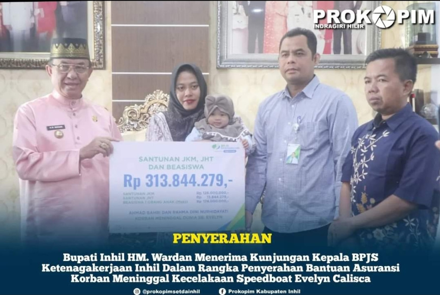 "Alhamdulillah hari ini saya menyerahkan bantuan musibah kecelakaan speedboat Evelyn Calisca 01 yang terjadi beberapa waktu lalu. Ini santunan yang diberikan oleh BPJS Ketenagakerjaan melalui ahli waris," kata Bupati H. Muhammad Wardan