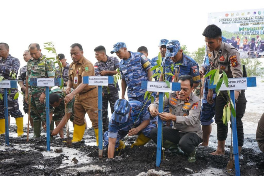 Sementara, tambah Wakapolda, untuk wilayah hukum Polda Riau dan Korem 031/WB sebanyak 26.800 bibit mangrove yang ditanam serentak di 5 wilayah diantaranya, di Desa Pangkalan Jambi, Kecamatan Bukit Batu, Kabupaten Bengkalis, sebanyak 4500 batang Mangrove.