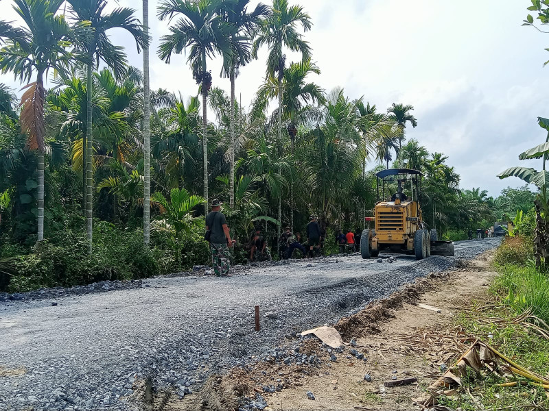 Hari ke 10, TMMD Kodim Inhil Sudah Tahap Pengerasan Badan Jalan