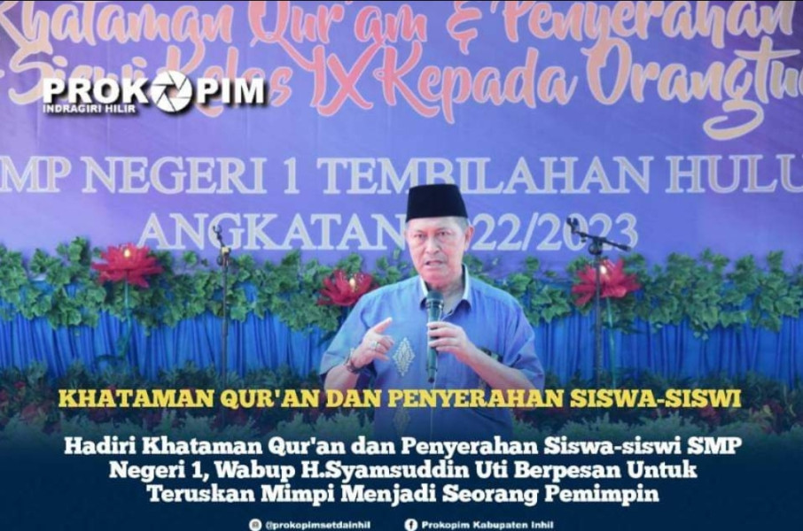 Hadiri Khataman Qur'an dan Penyerahan Siswa-siswi SMP Negeri 1, Wabup Inhil Sampi Pesan Ini
