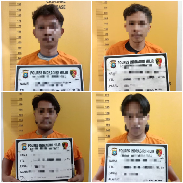 Keempat pelaku kini mendekam di balik jeruji besi Polsek Tembilahan Hulu untuk proses lebih lanjut.