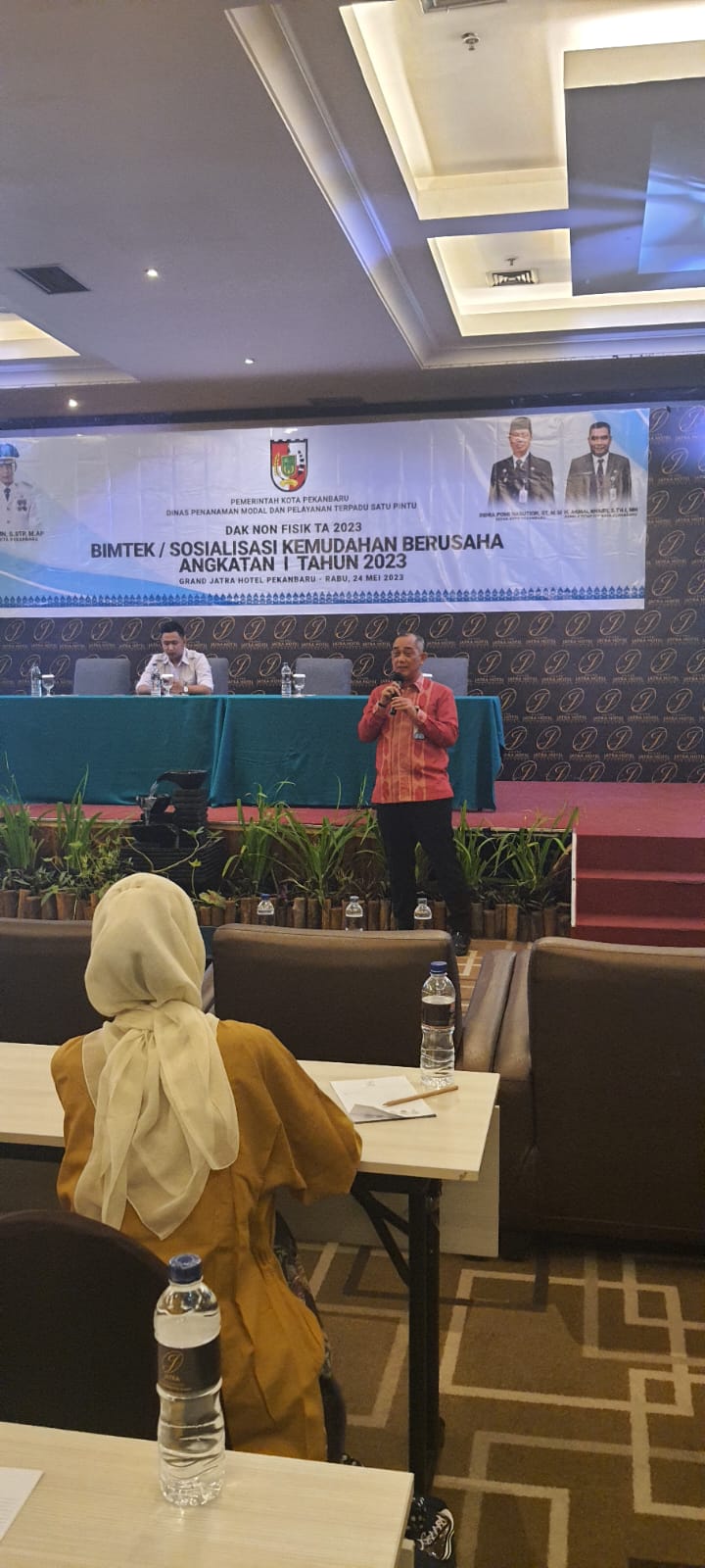 Kilasriau.com - BPJS Ketenagakerjaan (BPJAMSOSTEK) Cabang Pekanbaru Kota bersama Dinas Penanaman Modal dan Pelayanan Terpadu Satu Pintu (DPMPTSP) Kota Pekanbaru menggelar sosialisasi Program Jaminan Sosial bagi pelaku usaha pada kegiatan Bimbingan Teknis (Bimtek) Kemudahan Berusaha, Rabu (24/5/2023) di Hotel Jatra Pekanbaru.