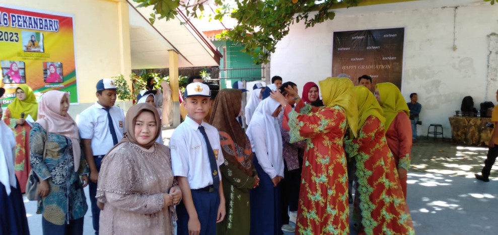 KILASRIAU.COM - SMPN 16 Kota Pekanbaru menyerahkan kembali 191 siswa kelas IX kepada orang tua dalam balutan acara Pelepasan Siswa Kelas IX Tahun Pelajaran 2022/2023, Selasa (30/5/2023) di halaman sekolah.