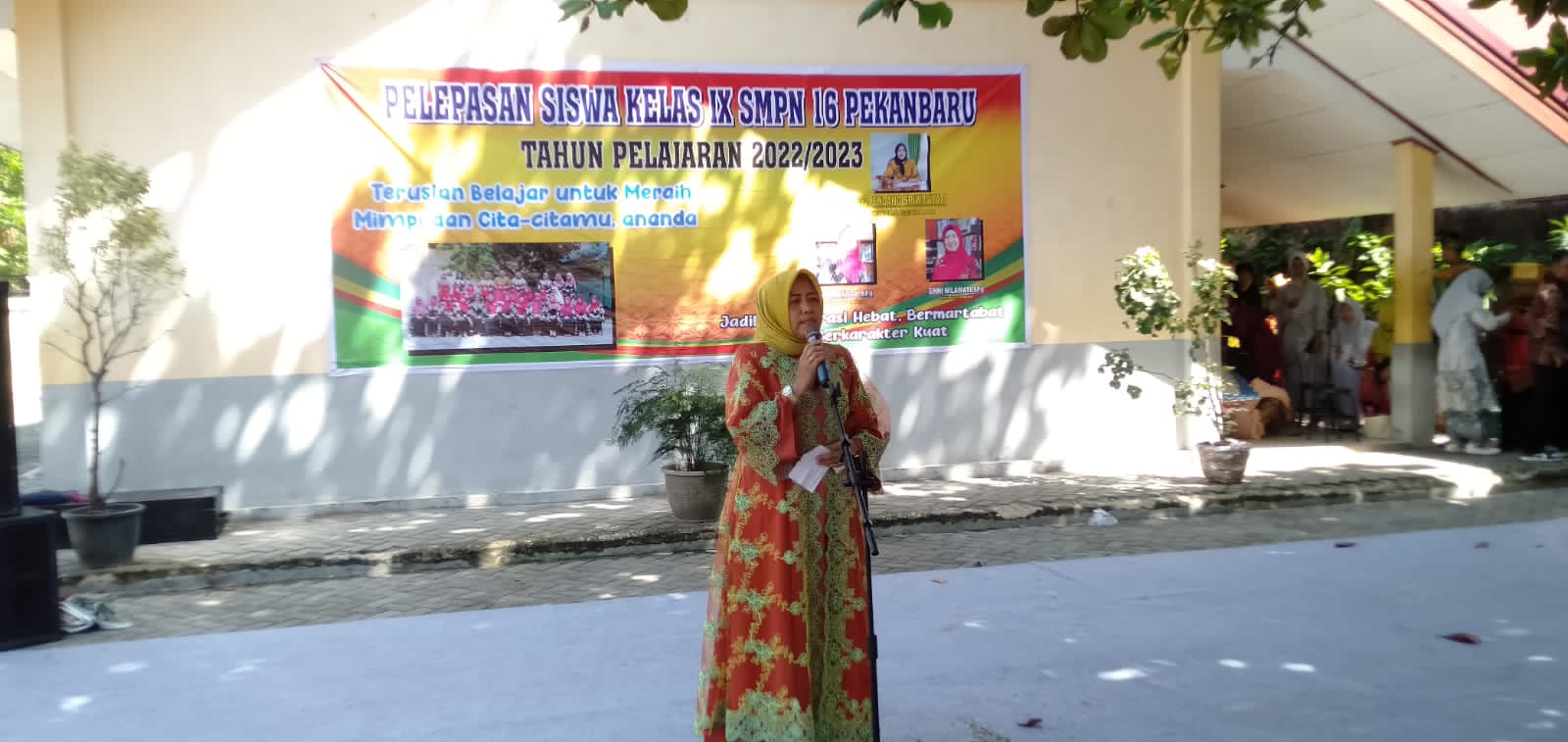 Kepala SMPN 16 Pekanbaru, Drs Endang Sriwijayati berpesan kepada siswa agar tetap menjaga nama baik sekolah dimana saja menuntut ilmu. Terulah menuntut ilmu setinggi mungkin. Jangan sia-sia kesempatan yang sudah diraih.
