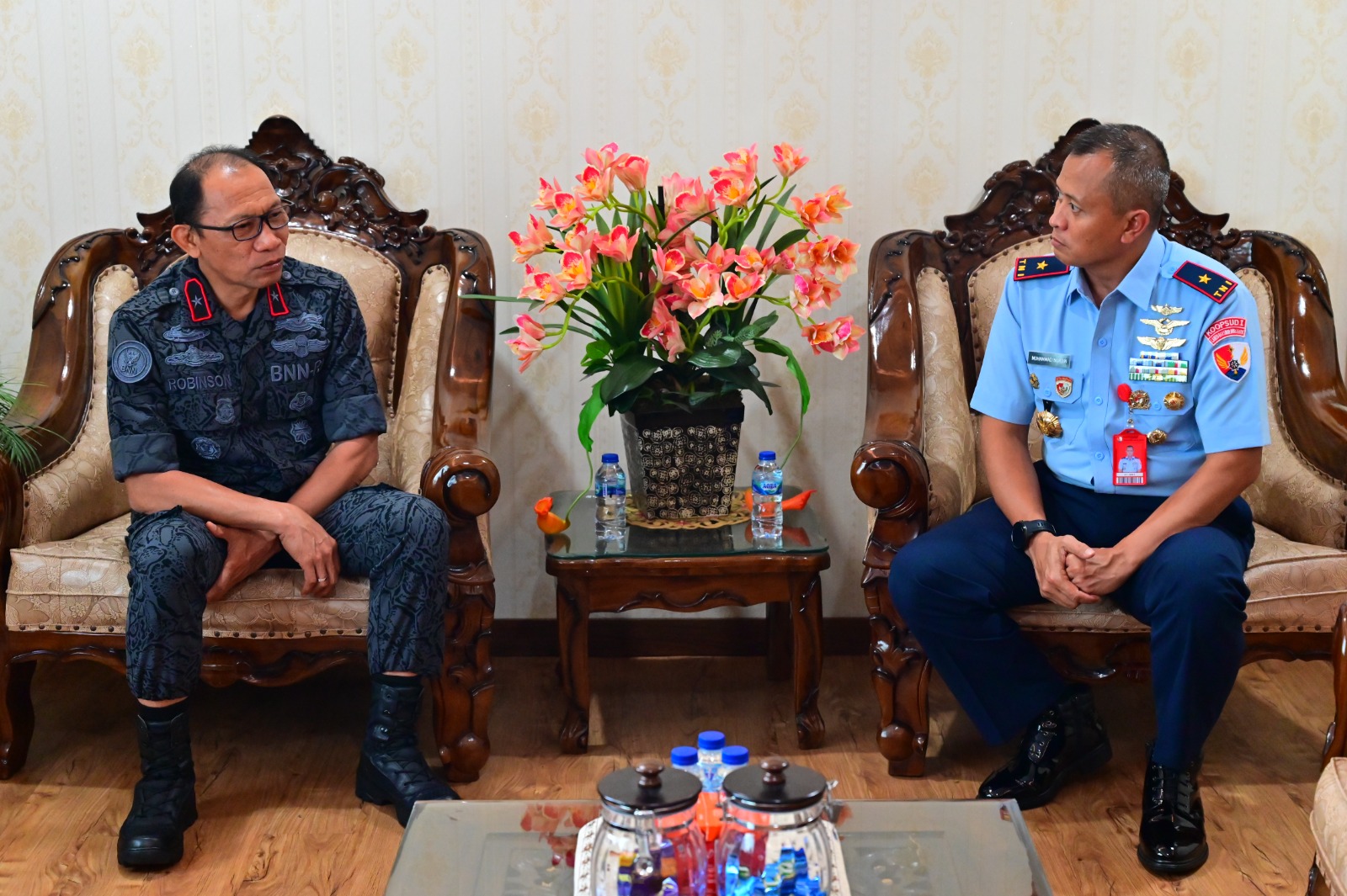 Kedatangan Danlanud Roesmin Nurjadin diterima langsung oleh Kepala BNNP Riau Brigjen Pol Robinson D.P Siregar S.H., S.I.K.