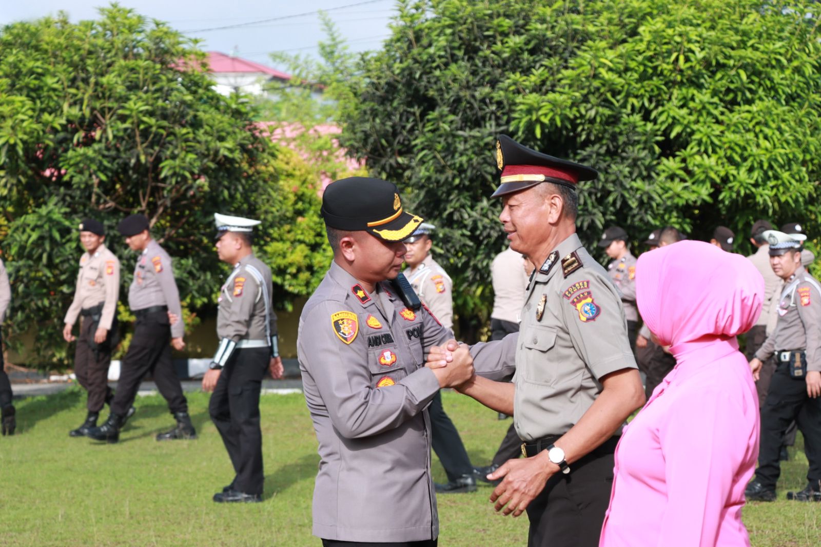 Upacara kenaikan pangkat ini ditandai laporan resmi dari personel yang naik pangkat IPDA Alinur kepada Inspektur Upacara.