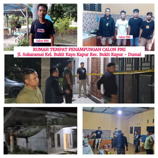 Hasil penyelidikan dilapangan ditemukan tempat penampungan Calon Pekerja Migran Indonesia melalui jalur tidak sah berada di Jalan Sukaramai Gang Mekar Sari Kelurahan Bukit Kayu Kapur Kecamatan Bukit Kapur – Kota Dumai.