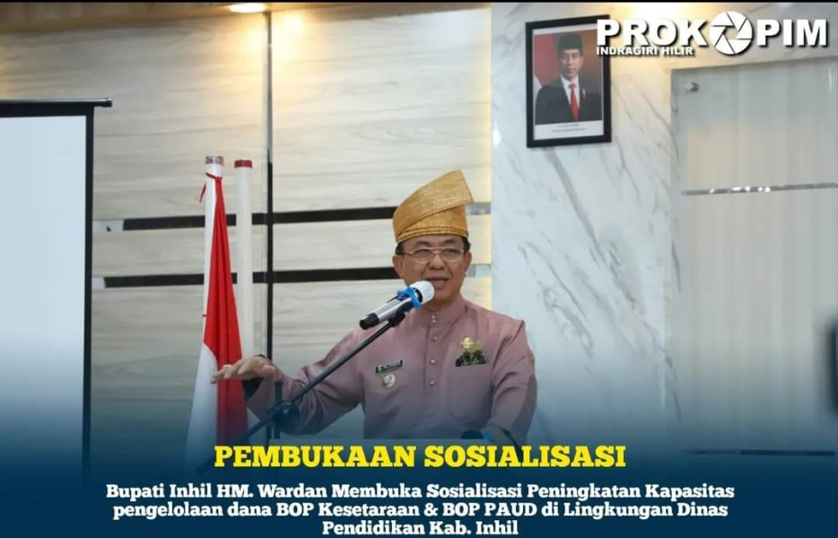 KILASRIAU.COM - Bupati Indragiri Hilir HM. Wardan membuka sosialisasi peningkatan kapasitas pengelolaan dana BOP Kesetaraan & BOP PAUD di lingkungan Dinas Pendidikan Kab. Inhil, Kamis (15/06/23).