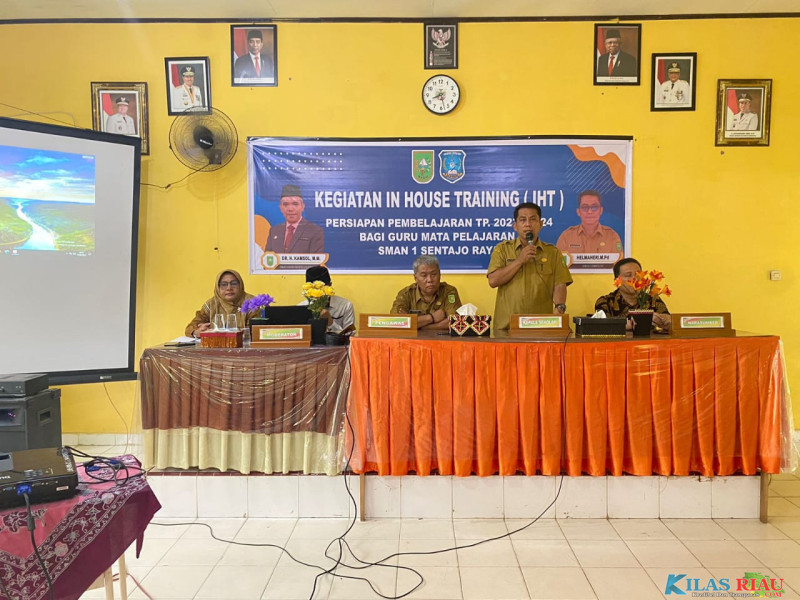 SENTAJO RAYA, KUANSING - Dalam rangka Persiapan Pembelajaran Tahun Pelajaran 2023/2024, SMAN 1 Sentajo Raya Taja 'In House Training' (IHT), yang diikuti oleh pendidik dan tenaga kependidikan di Aula Karumantiang SMAN 1 Sentajo Raya, Kabupaten Kuantan Singingi, Riau. Senin (19/06/2023).