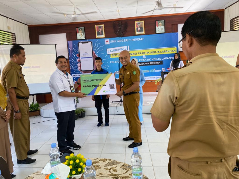 Pemberian Kartu BPJS Ketenagakerjaan diserahkan langsung oleh Kepala Bidang Kepesertaan BPJS Ketenagakerjaan Cabang Rengat, bersama Kepala Sekolah SMKN 1 Rengat Zuriati dan Kepala Dinas Ketenagakerjaan INHU, Rengga Dwi Bramantika.