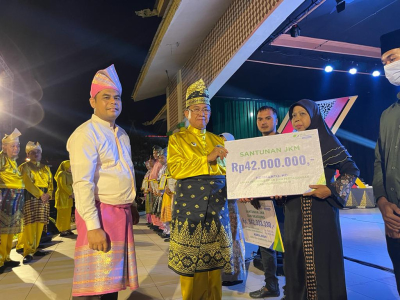 Bupati Inhil Serahkan BPJAMSOSTEK Kepada Ahli Waris Dalam Acara Malam Resepsi Mola Inhil ke 58 dan Pendiri Rakyat