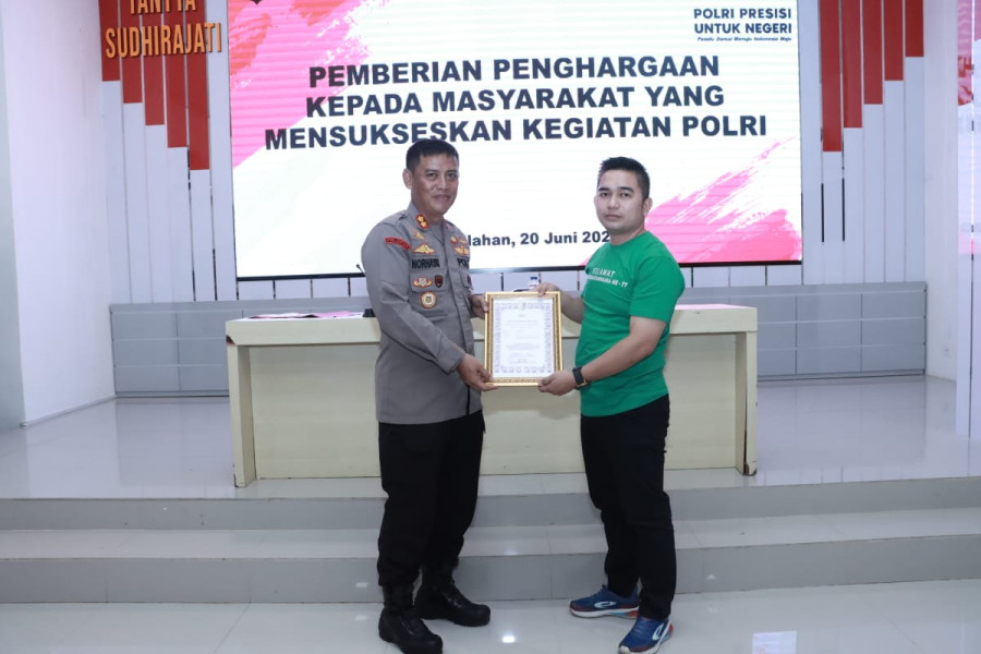 Pada kesempatan tersebut Kapolres Inhil juga memberikan Piagam Penghargaan atas dedikasi dan kontribusi dalam pelaksanaan sunatan Masal kepada dr. Rano Kirman.