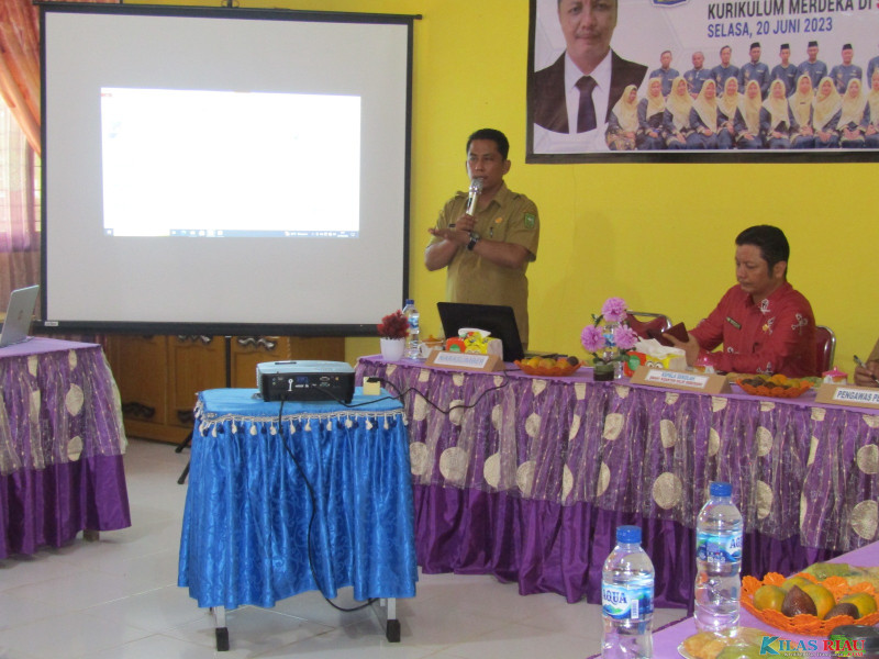 Sementara Kepala SMAN 1 Kuantan Hilir Seberang, Masrur, S.Si.,M.Si dalam sambutannya mengucapkan terima kasih kepada Pengawas Pembina Fadli, S.Pd yang telah membuka kegiatan ini dan narasumber yang berbagi keilmuan tentang kurikulum merdeka ini.