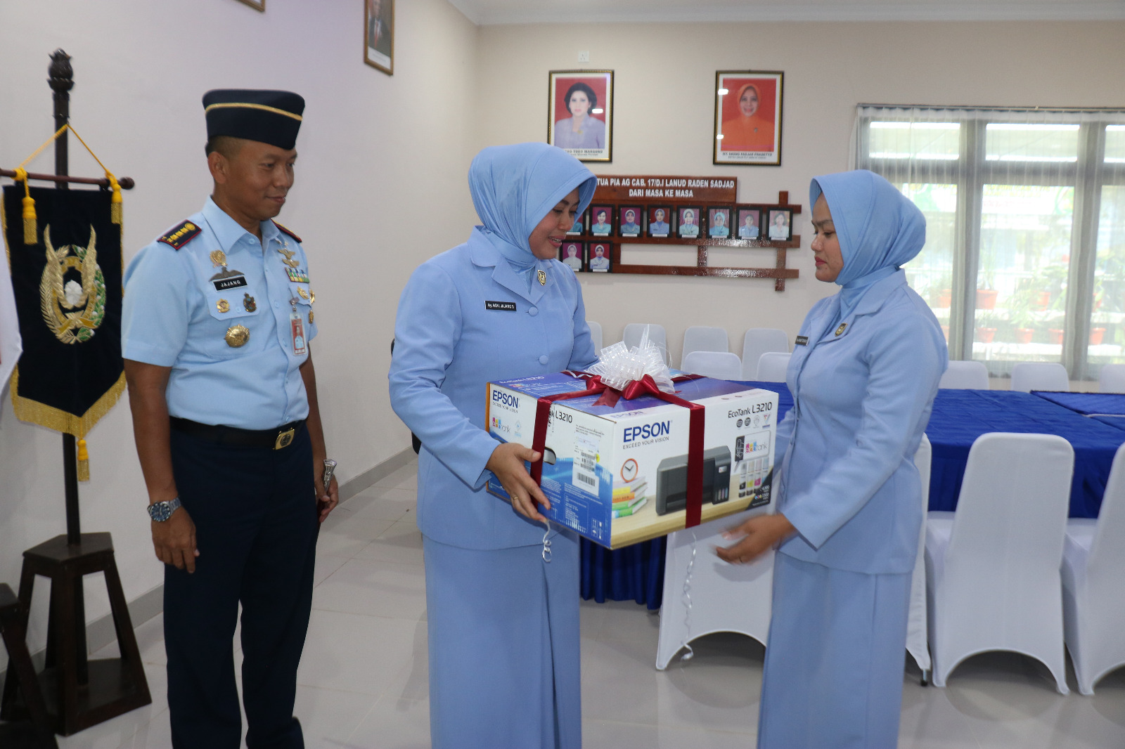 Usai acara peresmian Danlanud RSA dan Ketua PIA AG Cab.17/D.I meninjau fasilitas kantor dan Tanaman Obat Keluarga (TOGA) serta menyerahkan bantuan printer epson L3210 kepada Seksi Organisasi PIA Cab. 17/D.I Lanud RSA dilanjutkan penyerahan Speeds Pagar balita Pembatas. Baby Play Fence Kelas Premium kepada Kader POS KB Kesehatan Terpadu Garuda Lanud RSA.