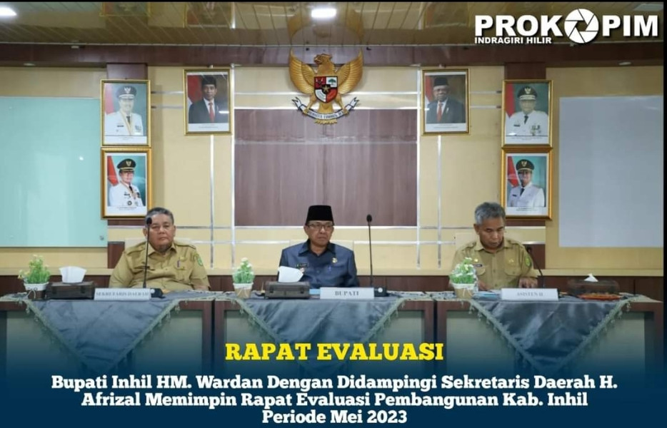 KILASRIAU.COM - Bupati Indragiri Hilir HM. Wardan dengan didampingi Sekretaris Daerah H. Afrizal memimpin rapat evaluasi pembangunan Kab. Inhil periode Mei 2023 yang di laksanakan di lantai 5 aula Kantor Bupati, Jl. Akasia no. 01 Tembilahan