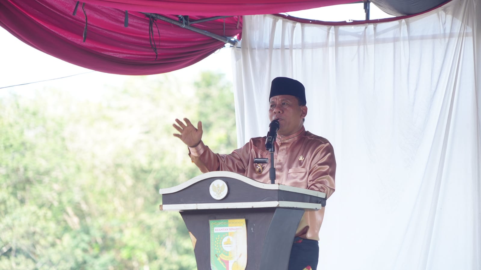 TELUK KUANTAN - Bupati Kuansing, Drs H Suhardiman Amby, mengapresiasi kekompakan masyarakat Desa Pulau Aro kecamatan Kuantan Tengah, yang sukses menggelar Pacu Jalur Mini tiap tahunnya. Hal itu di sampai H Suhardiman Amby, saat membuka gelaran Pacu Jalur Mini, Sabtu (08/07/2023) di Tepian Ronge Biru.