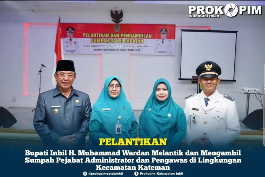 Adapun pejabat Administrator yang dilantik yaitu Camat Kateman, H. Junaidi, S.Sos, M.si, yang sebelumnya menjabat sebagai Camat Tempuling, beserta 4 (empat) orang Pejabat Pengawas.