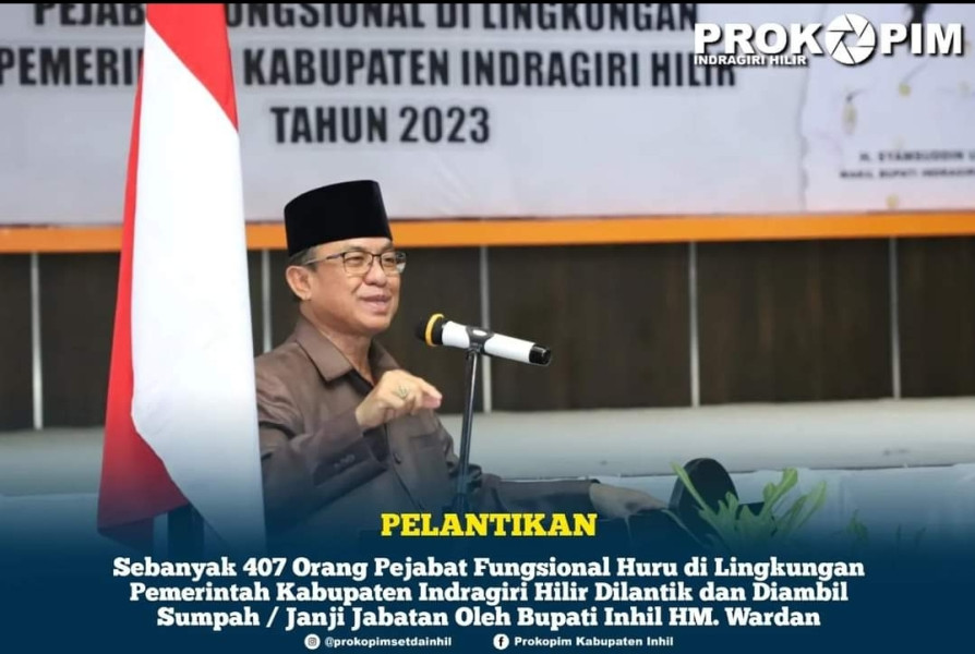 Kilasriau.com - Sebanyak 407 orang pejabat fungsional guru di lingkungan Pemerintah Kabupaten Indragiri Hilir dilantik dan diambil sumpah / janji jabatan oleh Bupati Inhil HM. Wardan, Senin malam (17/07/2023).