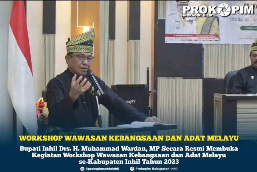 KILASRIAU.COM - Bupati Kabupaten Indragiri Hilir (Inhil) Drs. H. Muhammad Wardan, MP secara resmi membuka Workshop Wawasan Kebangsaan dan Adat Melayu se-Kabupaten Inhil, Jum'at (21/07/2023) di salah satu Hotel yang ada di Tembilahan.