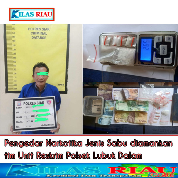 KILASRIAU.COM – Unit Reskrim Polsek Lubuk dalam-Polres Siak-Polda Riau kembali amankan pelaku penyalahgunaan Narkotika jenis Sabu-sabu di wilayah hukum Polsek Lubuk Dalam.