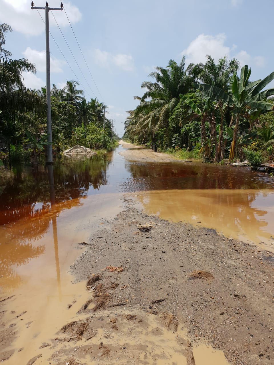 Banjir yang terjadi dikarenakan meluapnya dua sungai besar yang mengapit dua Desa tersebut, bahkan tingginya air sdh menggenangi beberapa titik ruas jalan Provinsi di wilayah desa itu yang mengakibatkan jalan sulit untuk di lalui karena kondisi jalan tersebut sampai sekarang belum beraspal.