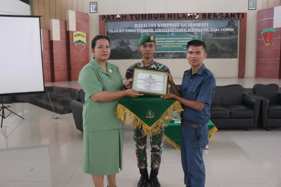 Yonkomposit 1/Gardapati dan Yayasan Pencegahan Kanker Nusantara (YPKN) melakukan kegiatan sosialisasi pencegahan Kanker dan Tumor di Gedung Serbaguna Yonkomposit 1/Gardapati. Kegiatan sosialisasi dihadiri ratusan prajurit dan Persit Yonkomposit 1/Gardapati.