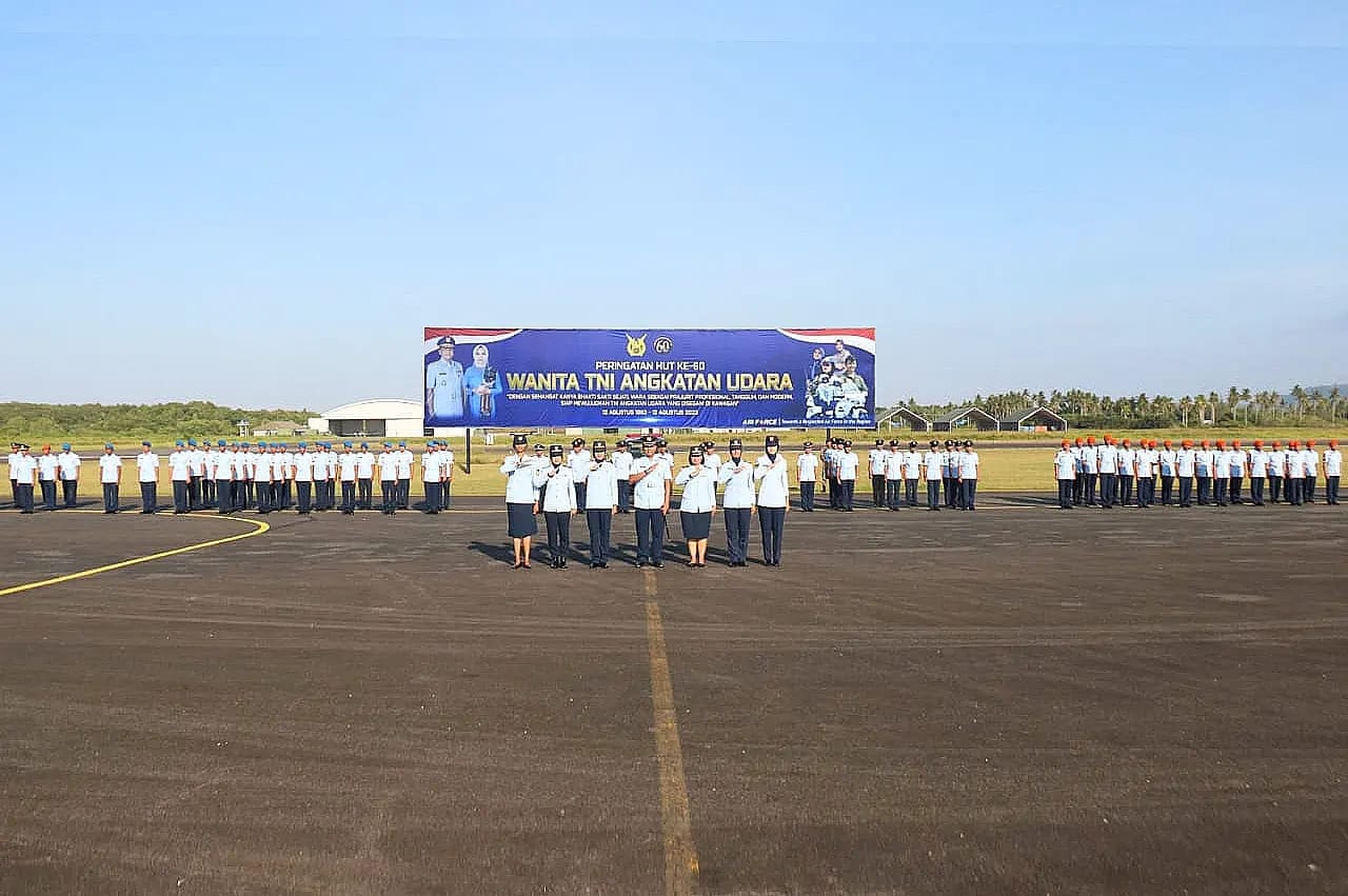 Kilasriau.com - Komandan Lanud RSA (Danlanud RSA) Kolonel Pnb Dedy Iskandar, S.Sos., M.M.S., M.Han., memimpin upacara peringatan ke-60 Hari Ulang Tahun (HUT) Wanita Angkatan Udara (Wara) di Main Apron Lanud RSA, Ranai, Natuna, Senin (14/8/2023).