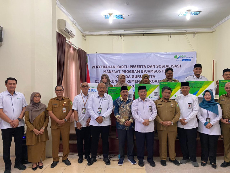 KILASRIAU.COM – Badan Penyelenggara Jaminan Sosial (BPJS) Ketenagakerjaan (BPJAMSOSTEK) bersama Kementerian Agama (Kemenag) Provinsi Riau menggelar penyuluhan manfaat program BPJS Ketenagakerjaan kepada guru MDTA melalui APBD Provinsi Tahun 2023 di Aula Kemenag Kota Pekanbaru, Senin (14/8/2023).