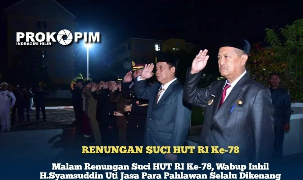 kilasriau.com -- Wakil Bupati Kabupaten Indragiri Hilir H.Syamsuddin Uti mengikuti apel malam renungan suci dalam untuk mengenang jasa para pahlawan yang digelar di Taman Makam Pahlawan (TMP) Yudha Bakti Parit 6 Tembilahan Hulu, Rabu (16/08/2023) malam tepat pukul 00.00 Wib berlangsung khidmat.