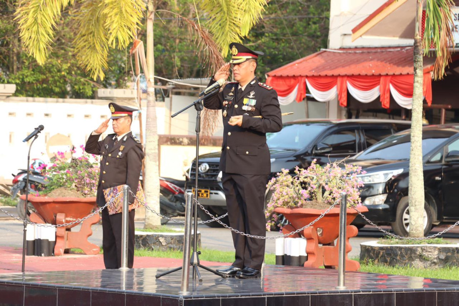 Bertindak Inspektur Upacara Kapolres Inhil AKBP Norhayat, Perwira Upacara AKP Trisno dan Komandan Upacara IPDA Zulhendri Syahputra.