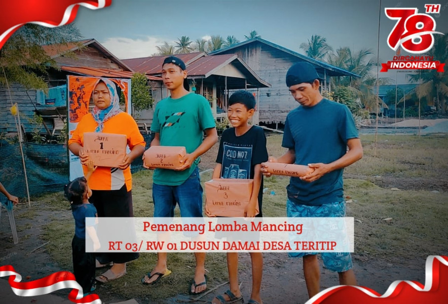 Tak hanya lomba memancing saja masih banyak lomba lainya yang diadakan dan di ikuti oleh 30 peserta mulai dari anak-anak hingga orang dewasa, baik laki laki maupun perempuan. Selain untuk ikut memeriahkan HUT RI ke 78, kegiatan lomba ini sebagai salah satu upaya untuk saling mempererat kerukunan warga masyarakat Dusun Damai Desa Teritip.