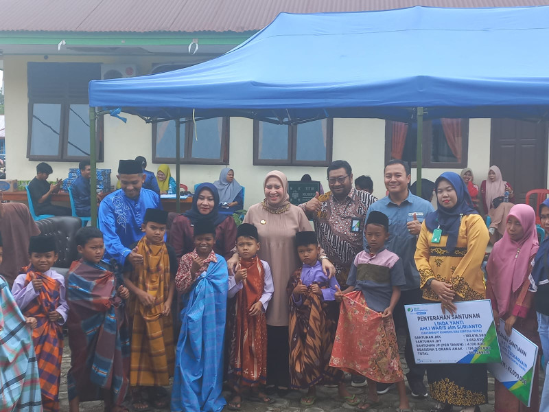 Pada kesempatan ini, Rezita juga menyerahkan secara simbolis santunan Jaminan Kematian (JKM) kepada ahli waris almarhum Zulkarnain, anggota BPD Desa Kuantan Tenang dan santunan kepada ahli waris almarhum Surianto, karyawan PT Kharisma Riau Sentosa Prima.