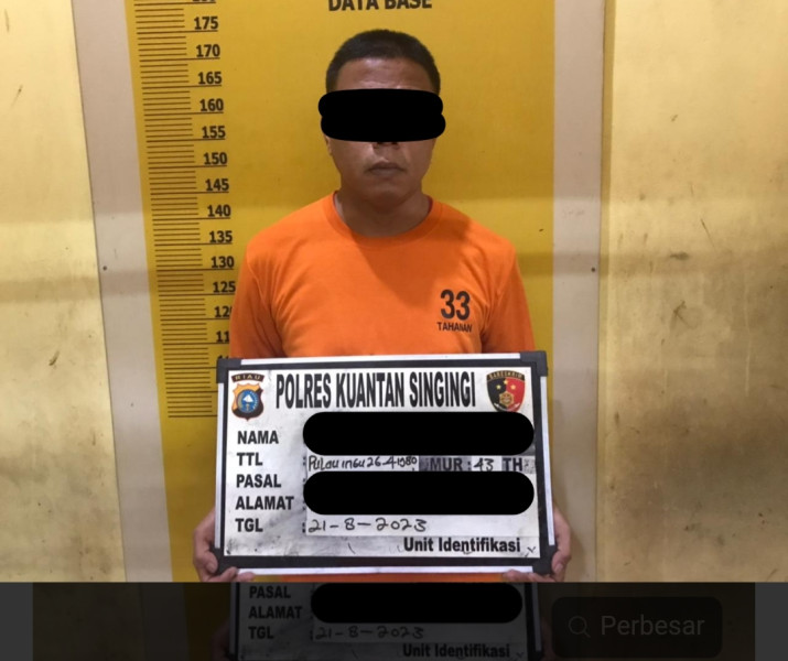 Pada hari Senin tgl 21 Agustus 2023, sekira pukul 10.00 wib, pelaku GS (43) datang sendiri ke Polres Kuansing, menghadap penyidik Sat Reskrim Polres Kuansing untuk diambil keterangan sebagai saksi, selanjutnya dilakukan gelar perkara dengan hasil gelar disimpulkan bahwa perbuatan terlapor GS (43) telah memenuhi bukti permulaan yang cukup dengan adanya dua alat bukti untuk penetapan sebagai tersangka dan kepada Terlapor GS (43) dilakukan penangkapan untuk di proses secara hukum.