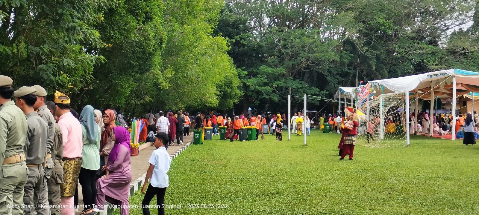 TELUK KUANTAN - Bupati Kuantan Singingi, Drs. H Suhardiman Amby, Ak,MM perkenalkan tim tenaga kebersihan sampah yang dinamakan dengan istilah Pasukan Garuda Putih kepada para tamu undangan dan seluruh masyarakat yang hadir dalam acara pembukaan festival pacu jalur tradisional Kuantan Singingi tahun 2023.