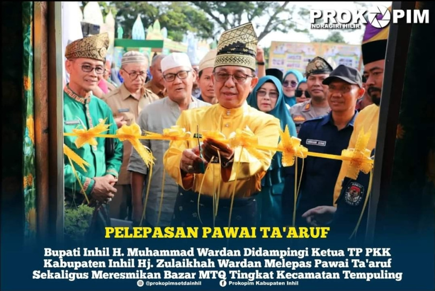 KILASRIAU.com - Bupati Indragiri Hilir H. M. Wardan di dampingi Ketua TP. PKK Kab. Inhil Hj. Zulaikhah Wardan melepas secara langsung Pawai Ta'ruf sekaligus meresmikan Bazar MTQ ke - 44 Th. 2023 serta gebyar DMIJ tingkat Kec. Tempuling yang dilaksanakan di halaman kantor camat, Selasa sore (29/08/2023).